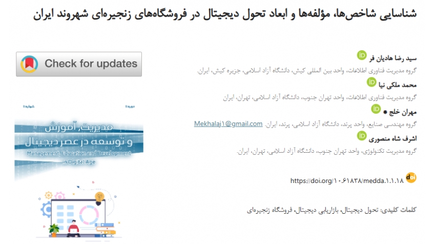 پژوهش حاضر باهدف شناسایی شاخص¬ها، مؤلفه¬ها و ابعاد تحول دیجیتال در فروشگاه¬های زنجیره¬ای شهروند ایران انجام شد. روش پژوهش با توجه به هدف آن، کاربردی و از حیث شیوه اجرا، کیفی از نوع توصیفی و تحلیل مضمون میباشد. جامعه آماری شامل خبرگان نظری (اساتید دانشگاه رشته بازرگانی) و تجربی (مسئولین ذیربط فروشگاههای زنجیرهای شهروند) بودند که با توجه به اصل اشباع و روش نمونهگیری هدفمند 20 مصاحبهشونده انتخاب شدند. روش گرداوری دادهها مصاحبه نیمه ساختاریافته بود. روش تحلیل دادهها در شامل تحلیل مضامین با نرمافزار Maxqda-V18 بود. یافتهها نشان داد ابعاد تحول دیجیتال شامل تجربه کاربری دیجیتال، مدیریت موجودی و بازاریابی دیجیتال است. شرایط علی شامل زیرساخت فناوری اطلاعات، نیروی انسانی، استراتژیهای بازاریابی دیجیتال و خدمات پس از فروش است. راهبردها شامل فناوریهای دیجیتال و نرمافزارها، بهبود خدمات به مشتریان و فرهنگسازمانی است. بسترها شامل دیجیتالی سازی فرآیندها و تحلیل کیفیت خدمات لجستیک است. پیامدها شامل تغییرات در رفتار مشتری، تأثیر بر عملیات داخلی، تغییرات در فرهنگسازمانی و تأثیر بر رقابتپذیری است و درنهایت موانع مدل شامل کمبود منابع مالی، مقاومت فرهنگی و سازمانی و کمبود مهارتهای فنی است. همچنین نتایج نشان داد تمامی روابط میان اجزای مدل معنادار است. درنهایت با توجه به عوامل شناساییشده درنهایت مدل پژوهش ارائه شد که نتایج بیانگر اعتبار درونی و بیرونی مدل مبتنی بر نظر مشارکتکنندگان بخش کیفی و پاسخدهندگان بخش کمی بود.