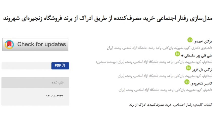 مدل‌سازی رفتار اجتماعی خرید مصرف‌کننده از طریق ادراک از برند فروشگاه زنجیره‌ای شهروند